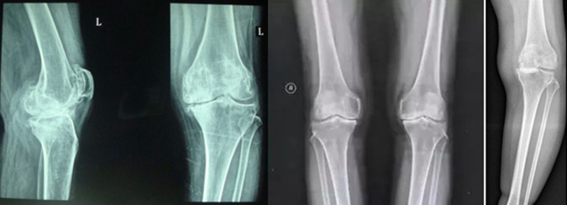 病例1:46岁,滑雪运动员,多发韧带伤,内翻畸形膝关节疼痛,开式截骨后二月全负重行走,膝关节疼痛缓解