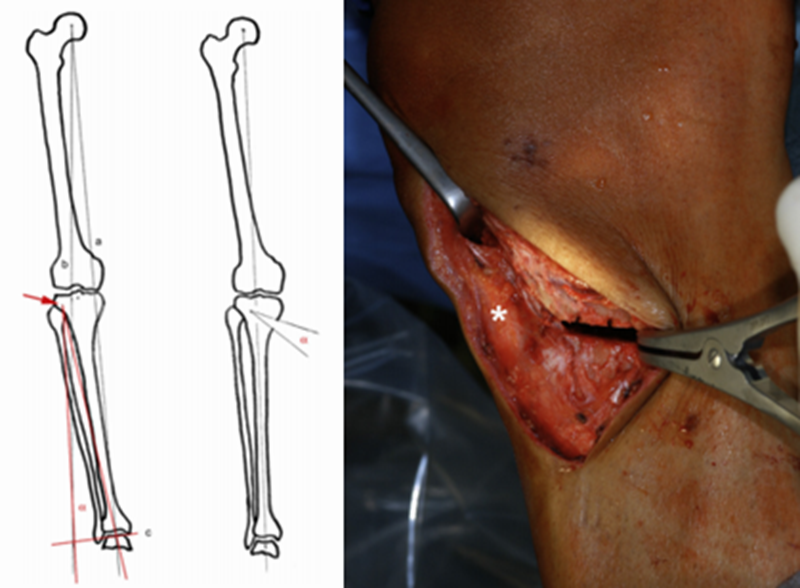缺点:造成下肢短缩,矫正度数有限,需行腓骨截骨,造成上胫腓关节不稳,容易损伤腓总神经,甚至可能出现筋膜室综合征。