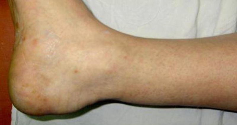 症状:跟腱部肿胀、疼痛,足跖屈无力。患者经常诉脚后跟被人踢了一脚,或棒击感。
