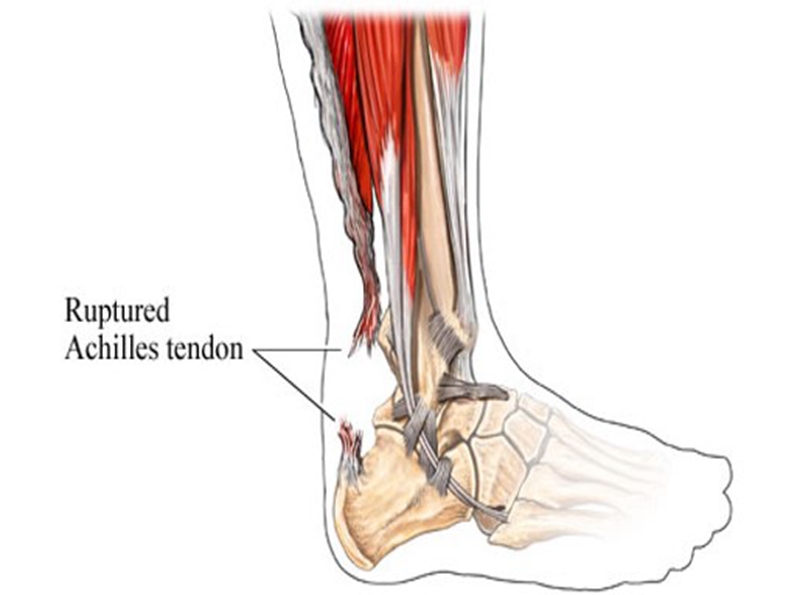 跟腱长期慢性牵拉劳损,产生跟腱炎、腱周炎,跟腱组织变脆,影响跟腱血供。