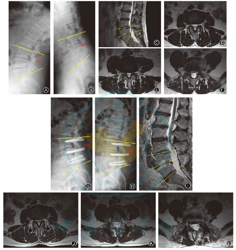 所有患者以门诊复查的形式进行随访,在术后1个月、1年及此后每2年复查,摄腰椎正侧位及过伸过屈位X线片,并行腰椎MR检查。