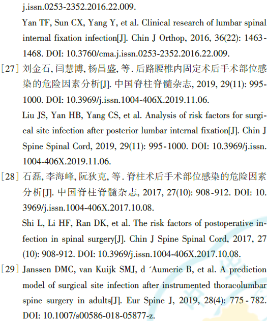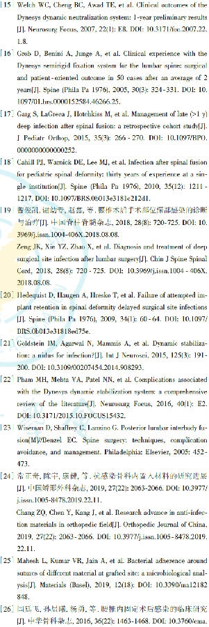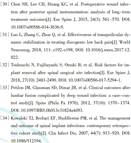 关键词:腰椎;外科伤口感染;内固定器