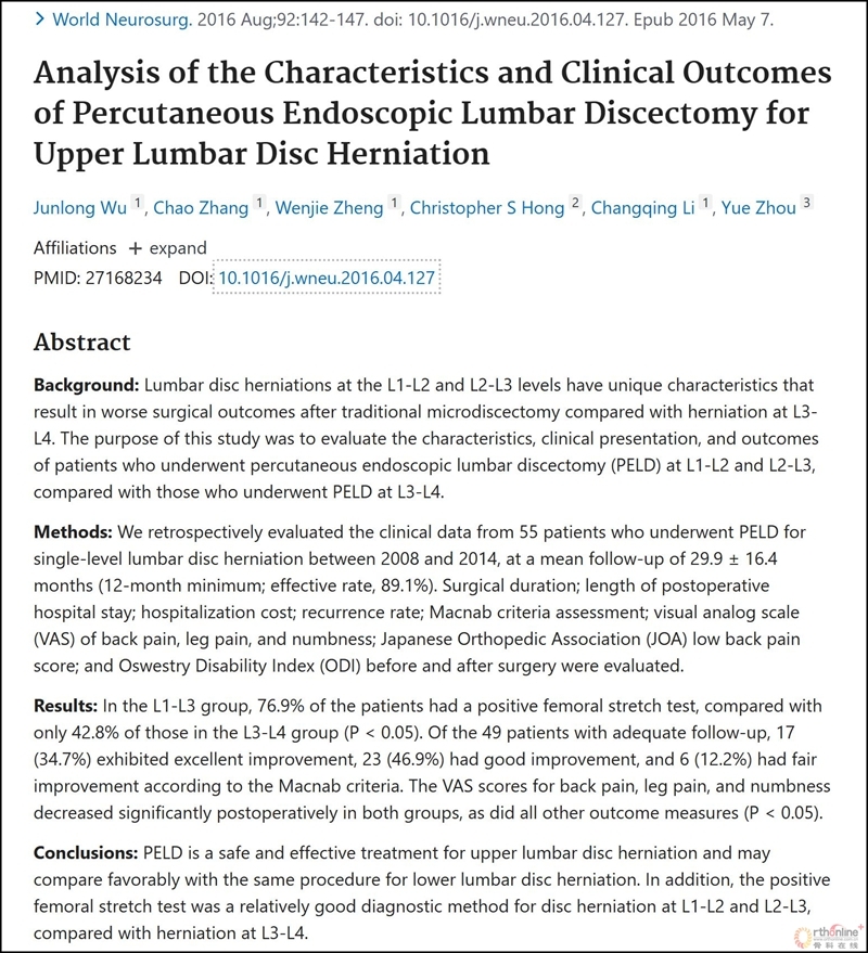 文献梳理|高位腰椎间盘突出症的微创治疗