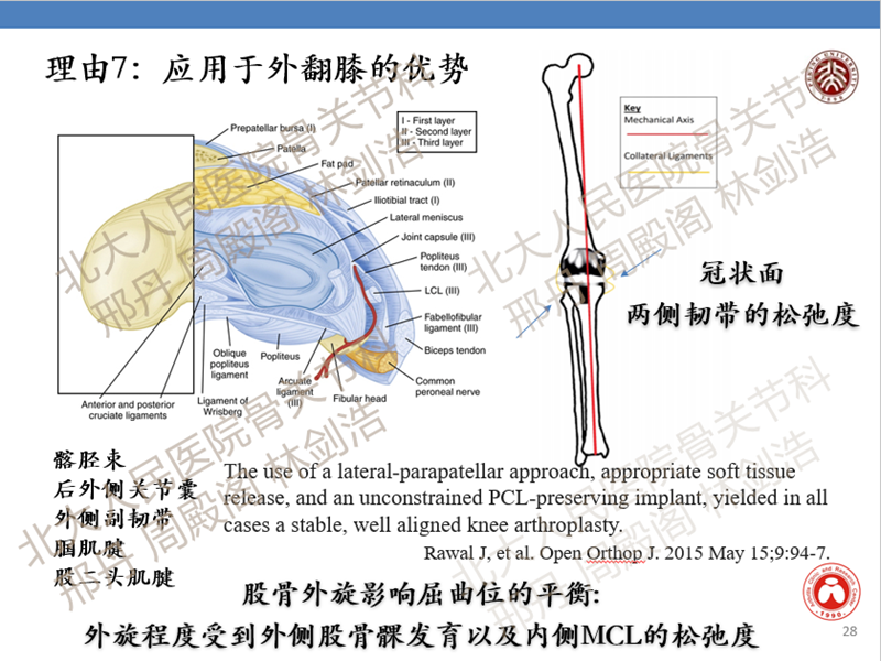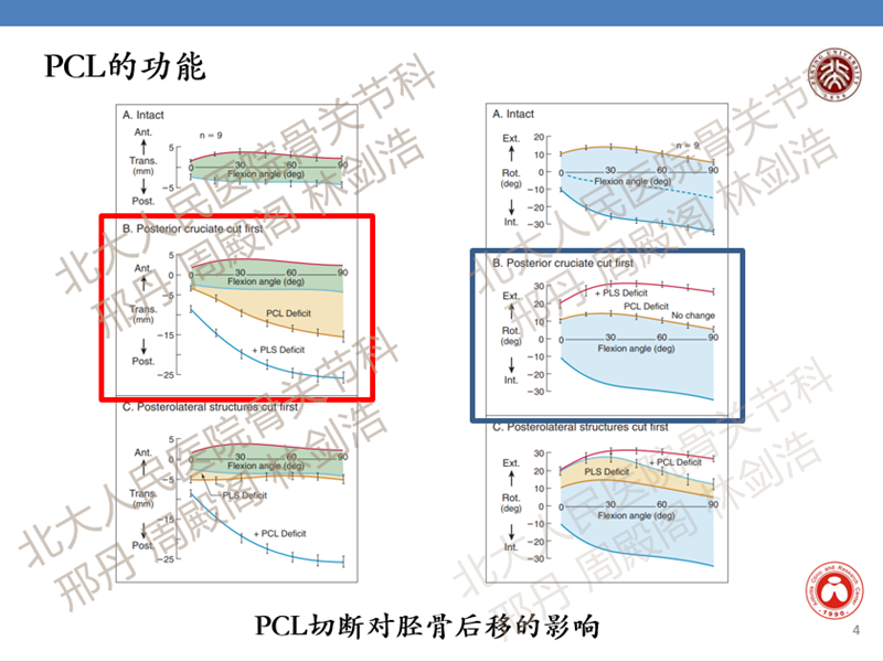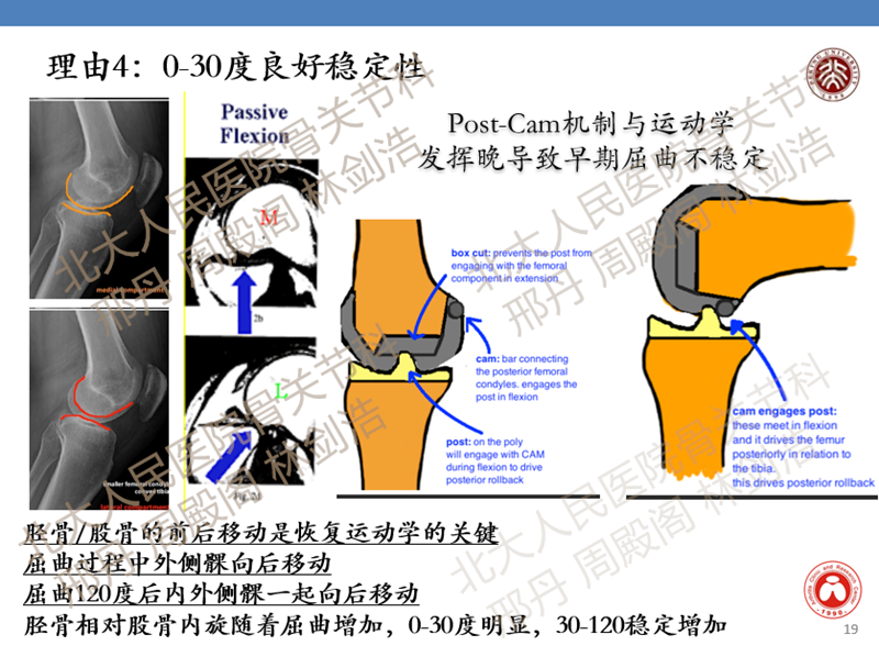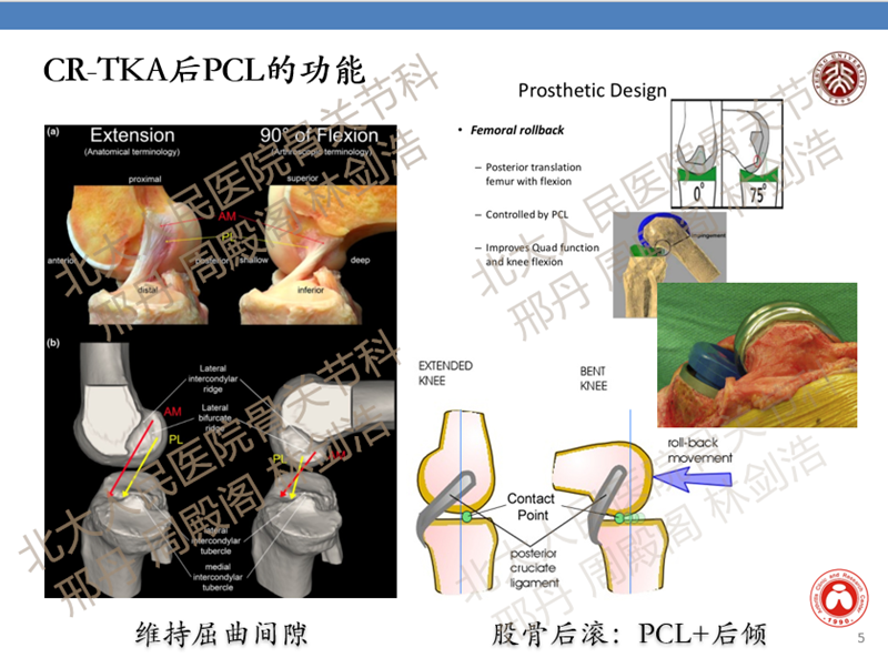 以前关注后方磨损,后来后方设计变薄弱,就可以减轻后方压力,同时促进股骨前移,因此rollback是不连续的ACL缺失导致伸直位后方接触;PCL缺失导致股骨向前移位。