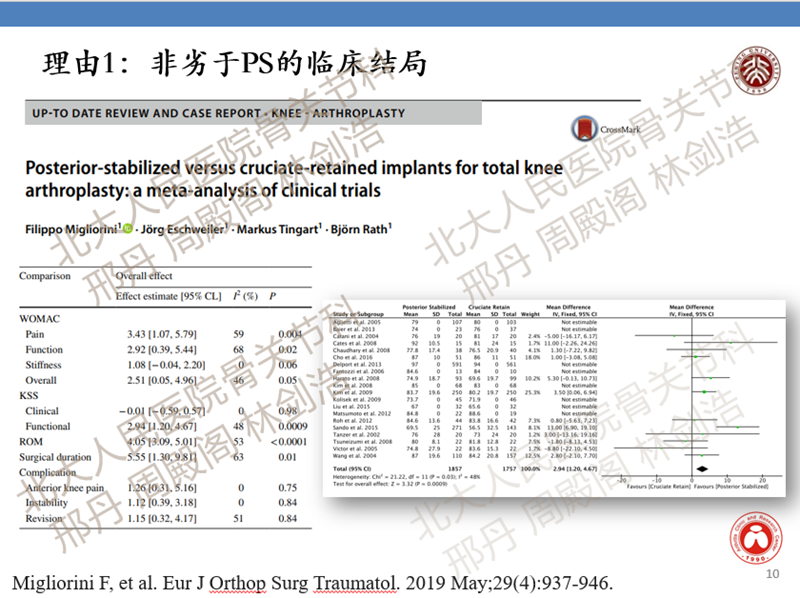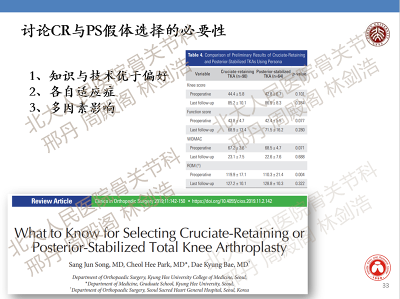 CR、PS膝关节假体是半个世纪来TKA领域争议的热点之一。众所周知,医生的偏好可能影响假体的选择,但适合术者的假体不一定适合患者。尽管选择了自己熟悉的假体,但很多临床医生在临床实践中仍然会遇到一些棘手的问题。本课件从理论以及作者的临床经验方面展示了CR假体的10大优势,以帮助临床医生认识并熟悉CR膝关节假体的优势。