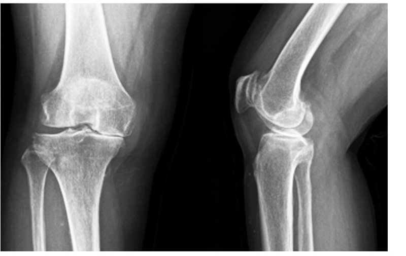 图1术前 X线片示内侧间隙呈骨对骨改变