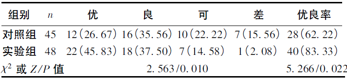 实验组治疗效果明显优于对照组(P<0.05) 。见表2。
