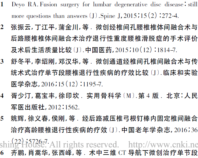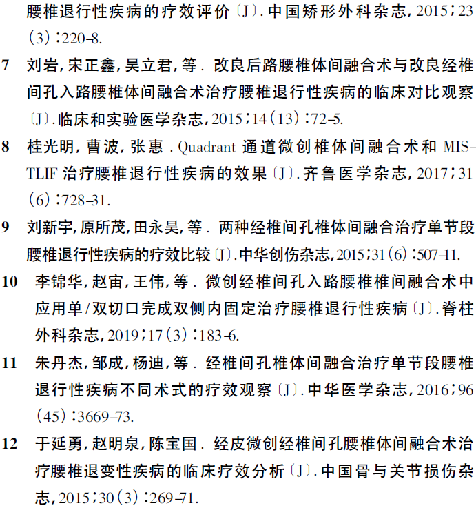 关键词:腰椎退行性疾病;经椎间孔腰椎椎体间融合术;疼痛程度;腰椎功能障碍