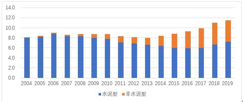 1.2 英国关节登记系统(NJR):我们再来看看英国的情况,英国关节登记系统始建于2003年,是目前全球最大的关节登记系统,已经纳入了300多万关节置换的病例数据,被认为是全球登记系统的典范。从2003-2019年期间共纳入了130多万例初次膝关节置换病例,其中单髁总占比9.1%。从各年度的单髁占初次膝关节置换的比例来看,一直到2014年前,单髁都始终保持一个平稳的比例,大约占8%左右,2014年开始单髁占比稳步增长,到了2019年,占比达到11.5%(图3)。按照假体固定类型来区分,骨水泥型单髁比例更高,与生物型单髁的比例是3.47:1,但近十年来,生物型假体的占比呈逐年上升的趋势。虽然总的活动平台单髁比例更高,与固定平台单髁的比例是1.96:1,但从近十年来两种平台的应用比例趋势来看,固定平台占比逐渐增加,从2010年占比只有30%,到2019年开始固定平台单髁的应用比例已经超过了活动平台单髁(图4)。