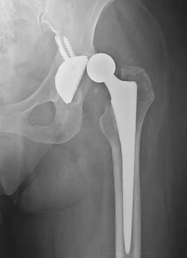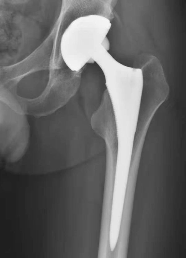 图1 人工髋关节置换术后正常X线表现