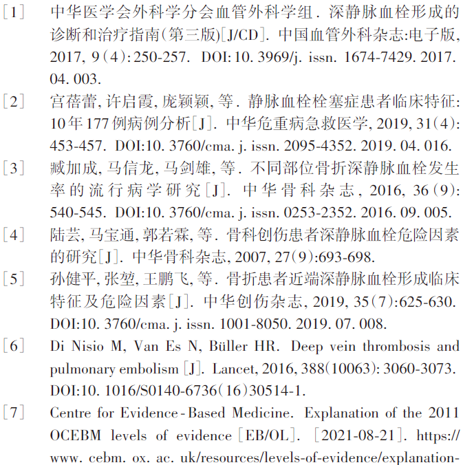 创伤骨科患者围术期下肢静脉血栓形成诊断及防治专家共识(2022年)