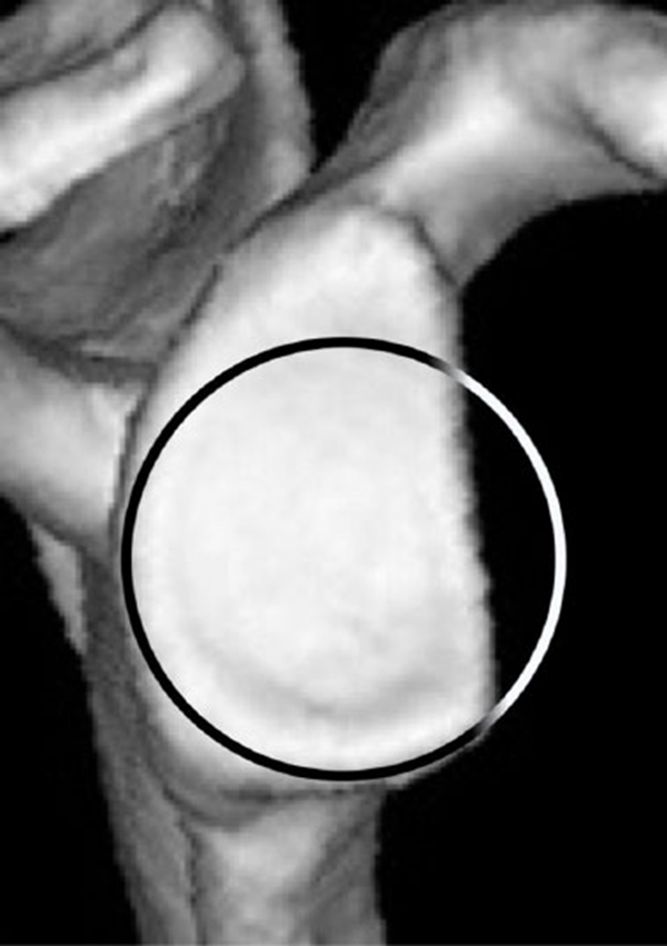 ①“最佳拟合圆”法。应用了一个最适合的圆圈,它完美地适合于关节盂的后部和下部。这个圆圈被认为接近关节盂的原始形状。