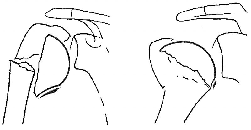 骨折类型的评估基于标准肩胛骨前后位及腋位X线片。若上述标准无法通过X线进行评估,则结合MRI及CT进行评估。