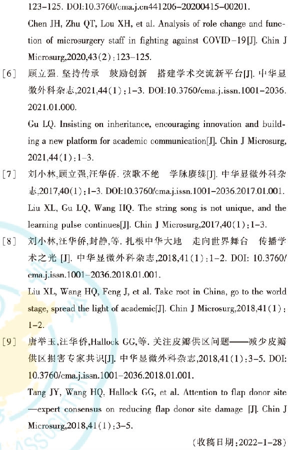 来源:中华显微外科杂志2022年6月第45卷第3期