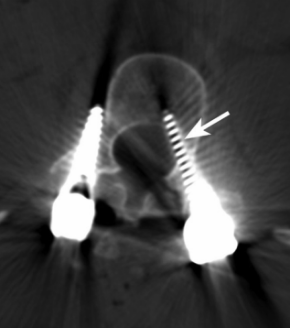植入物相关并发症包括植入物松动、移位、拔出或断裂等,可能导致血管、神经和脏器损伤。Weiss等综述性研究认为螺钉移位是微创经椎间孔腰椎融合术常见并发症之一。Liu等通过对3936例腰椎手术患者的临床资料进行分析,发现21例因螺钉移位再次手术。Ghobrial等的系统综述显示,在2052例患者中有37例在腰椎后路减压融合术后发生神经功能损伤,其中11例是螺钉移位造成。Khalifa等研究纳入51例接受腰椎融合术的患者,平均随访24个月,发现1例因螺钉移位而再次手术。Šámal等发现,51例腰椎间盘退变患者行微创腰椎后路椎间融合术后,发生5例螺钉移位,1例再次手术调整植入物。Tsai等统计分析了10350例多种脊柱手术患者临床资料,发现4 984例螺钉植入患者中有41例术后1周内发生螺钉移位,其中11例手术调整螺钉,余30例拔除螺钉后未重新植入。除螺钉移位需要再次手术治疗外,骨水泥外渗的患者必要时也需要采取手术治疗。Janssen等报道165例接受胸腰椎骨水泥增强椎弓根螺钉手术的脊柱肿瘤或脊柱退行性疾病患者中,有10例发生骨水泥硬膜外渗漏,其中2例需要再次手术。螺钉和骨水泥等植入物是否稳定与骨质有很大的关系。Lee等提出骨质疏松症患者脊柱融合手术后更容易发生植入物并发症。Khalid等也提到,接受腰椎融合术的骨质疏松症或骨质减少患者术后并发症发生率较高,包括椎弓根螺钉松动等,部分患者需要再次接受手术治疗。植入物并发症一般发生在脊柱手术后较长时间,可能由于患者活动不当造成。因此,手术后应详细告知患者避免不当的活动方式,对于骨质疏松的患者更应提高警惕,术后帮助患者改善骨质,减少再次手术风险。