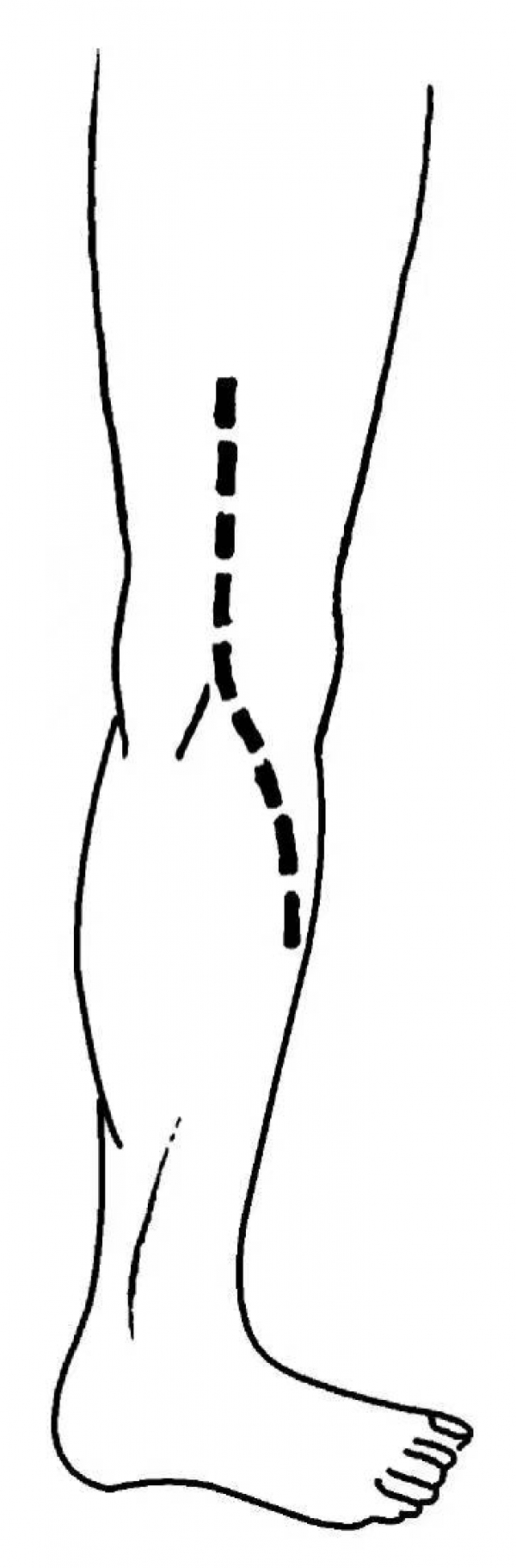 腘动、静脉位于神经深面,从神经发出的肌支应小心保护。由于胫神经进入比目鱼肌腱弓的深面后,慢慢转向小腿内侧,故显露小腿中段及下段胫神经要采取小腿内侧切口。即从小腿内侧中部腓肠肌内侧缘开始,在跟腱和内踝中点的连线上。