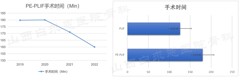 PE-PLIF的手术时间长于PLIF术(P<0.05)
