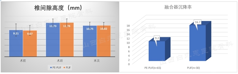 PE-PLIF组和PLIF组均显著改善术后椎间隙高度