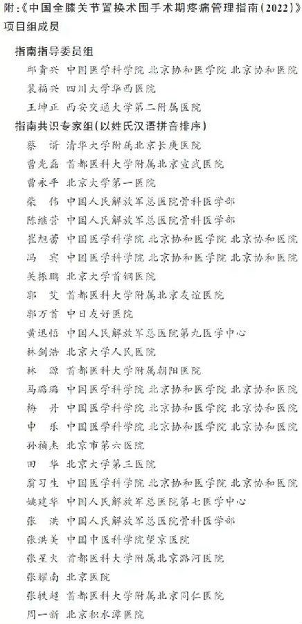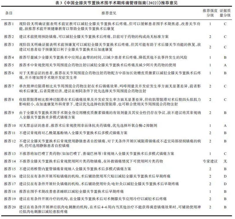 中国全膝关节置换术围手术期疼痛管理指南(2022)