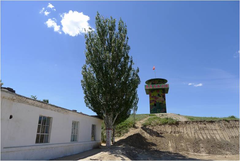 我们一行人来到了塔城军分区的北疆边防哨所,一个位于巴尔鲁克山西部的边防前哨。北疆边防哨所建于1962年,由于当时的中苏边境斗争异常复杂,这里一直处于对敌斗争的最前沿,战士们凭借着“两峰骆驼一口锅,戈壁建站住地窝”的艰苦创业精神,在荒无人烟的戈壁沙滩完成着卫国戍边的光荣任务,履行着一个革命军人的神圣职责。