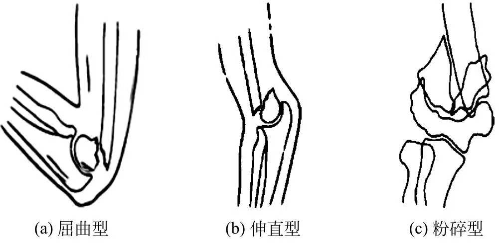 肱骨髁上骨折根据暴力来源及方向可分为伸直型、屈曲型和粉碎型三类。见(图3)。