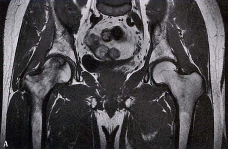Ⅰ期,有症状和体征,但X线正常,MRI可见股骨头信号改变、骨髓水肿。
