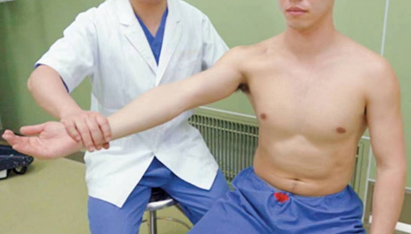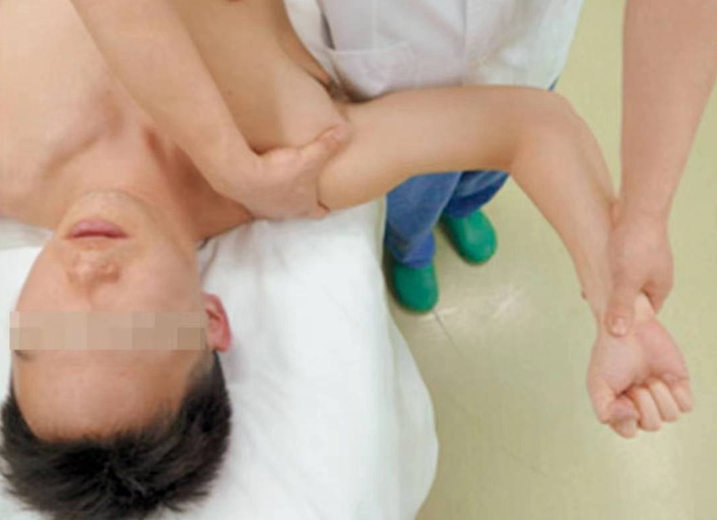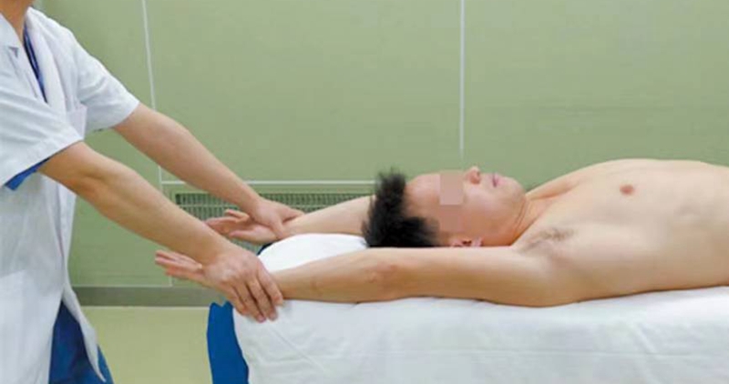 是指将患者肩关节被动体侧外旋至最大角度,如果撤去外力,无法维持此位置而迅速内旋,则为阳性(图4)。