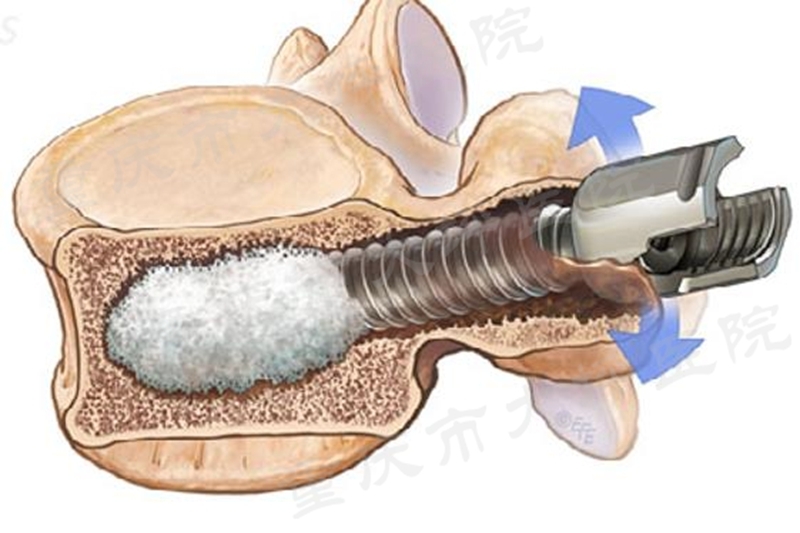 课题组前期的回顾性病例对照研究证实,单侧使用PMMA螺钉(2颗)与双侧使用PMMA螺钉(4颗)具有相近的临床疗效,成功将PMMA螺钉使用的推荐数量从4颗减少为2颗。进一步观察发现,普通椎弓根螺钉失效模式为“雨刮效应”(图2)。