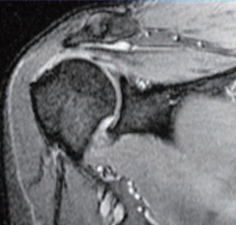 MRI检查是目前在诊断肩袖疾病中最常用的检查方法,对全层肩袖损伤的敏感性和特异性分别高达96%和98%,因此成为目前判断肩袖损伤最为有效的辅助检查方法。