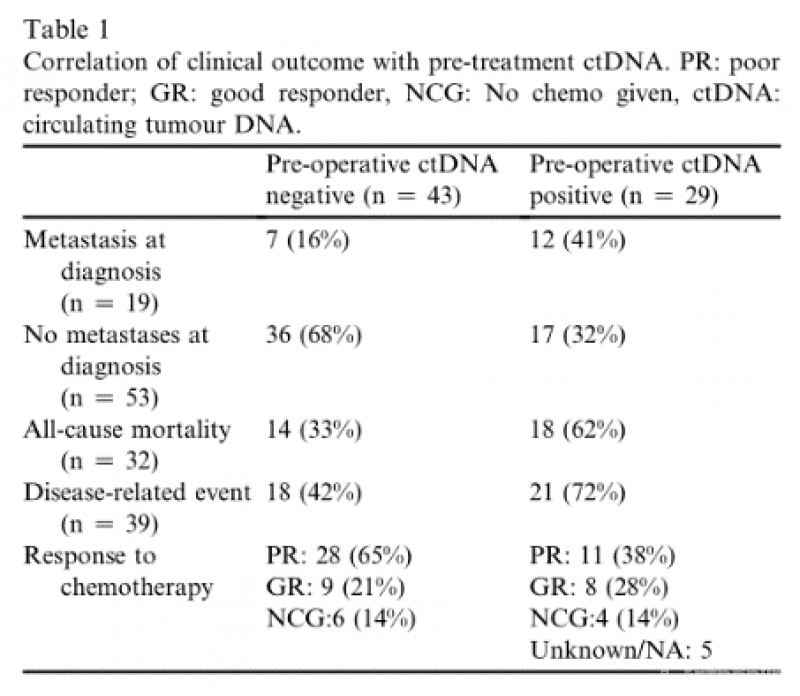 除了术后分析外,ctDNA诊断分析的价值仍不确定。假设,在任何确定治疗(低脱落肿瘤)前排除ctDNA阴性的患者可能会降低确定治疗后假阴性结果的发生率。