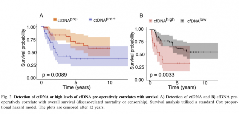 在17例出现临床局限性疾病的患者中,术前检测到ctDNA,其中10例随后发生了疾病相关事件,这一发现表明,液体活检有可能早期识别这些不良结果高风险的患者。虽然我们无法显示基于术前ctDNA检测的局部疾病队列在生存率上的统计学显著差异,但我们预计一个更大的验证队列将证明这一点。