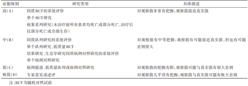 表1 牛津循证医学中心证据分级