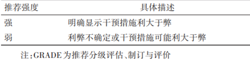 表2 GRADE推荐强度分级