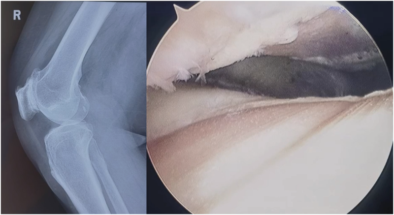 结合影像学检查,该患者不适合做关节置换,最终选择关节镜探查后,切开行髌骨成形术。