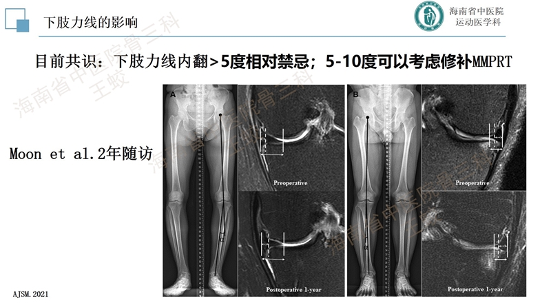(1)如果下肢力线正常或<5度,单纯MMPRT修补/MMPRT修+Centralization(半月板中心化);