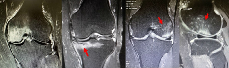 1、对突发的膝关节疼痛,X光检查未见明显异常时,如症状持续不能缓解,建议尽早行MRI检查。SONK早诊断、早治疗、预后好。