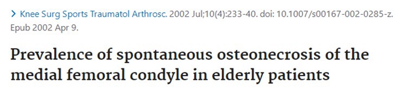 Pape等通过MRI的流行病学调查,发现年龄大于65岁,没明确外伤史,突发的膝关节内侧疼痛,诊断为SONK的病人达到9.4%。