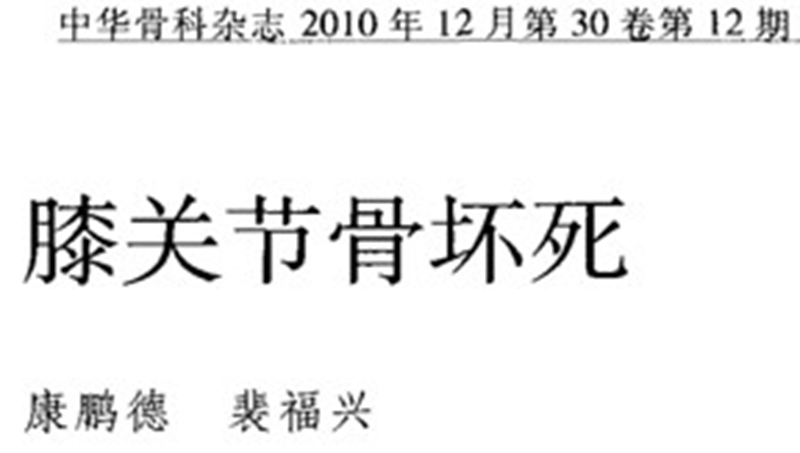 膝关节自发性骨坏死(spontaneous osteonecrosis of the knee,SONK)是指发生于股骨内侧髁负重面深层、原因不明的局部骨坏死,也可发生于股骨外侧髁或胫骨平台,在1968年由Ahlback等首先描述。
