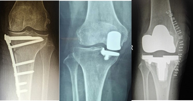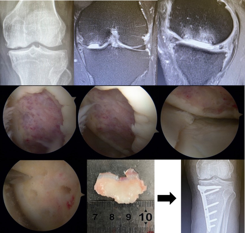 手术治疗包括关节镜下髓芯减压术、自体软骨移植术、HTO、关节置换术(UKA、TKA)。