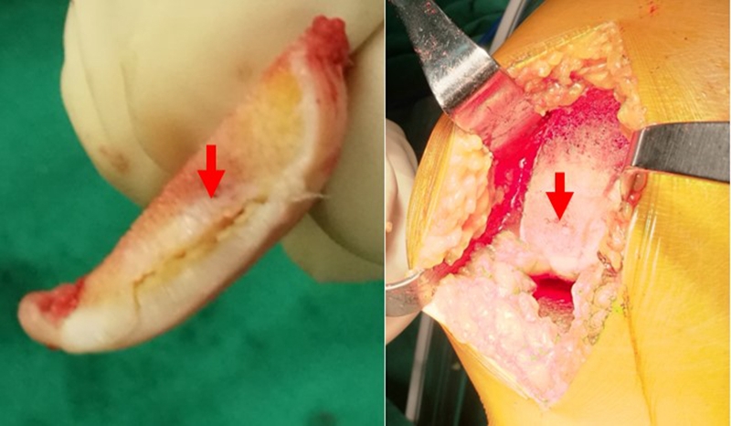 病理显示软骨下不完全骨折或局灶性软骨下骨坏死
