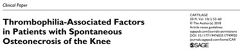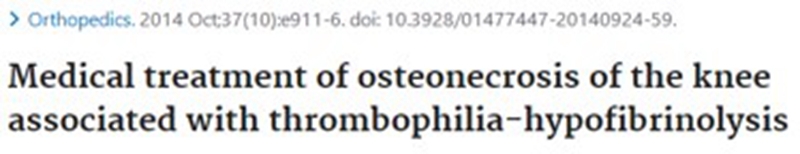 2014年的一项研究中,在6名Ⅱ期SONK患者均患有血栓形成倾向,其中4名同时患有低纤维蛋白溶解,接受依诺肝素治疗的易血栓性低纤溶性患者没有出现塌陷或进展为严重的骨关节炎,并且大多数患者的疼痛得到缓解并恢复了全部功能。