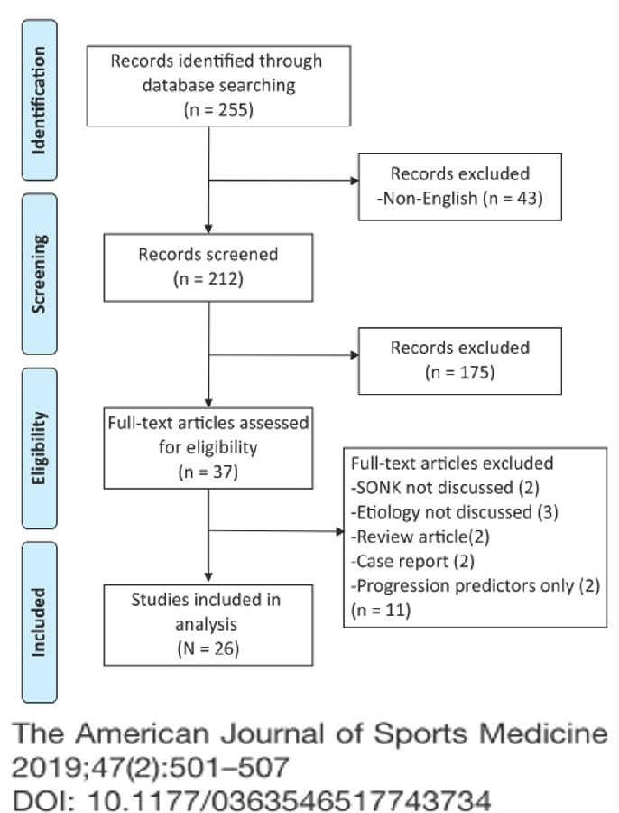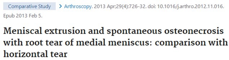 另一项研究纳入26篇文章,其中有21篇(80.7%)涉及半月板在SONK发展中的作用,启示SONK与半月板撕裂或半月板切除术后的发展有关,而内侧半月板撕裂、后根撕裂更常见。