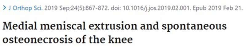 [8] Hashimoto S, Terauchi M, Hatayama K, et al. Medial meniscus extrusion as a predictor for a poor prognosis in patients with spontaneous osteonecrosis of the knee[J]. The Knee, 2021, 31: 164-171.