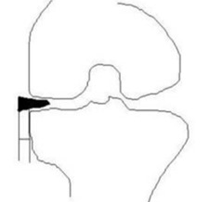 关于影像学评估与SONK的预后的关系,多项研究表明小于3.5cm2的小坏死病变可进行保守治疗,在冠状位X片上5cm2软骨下病变面积作为预测预后不良和高风险进展的临界值,前后位X片坏死区>50%髁,会迅速塌陷,病变范围很大(>40%髁/前后位X 片)或有早期骨关节炎的影像表现,保守欠佳。