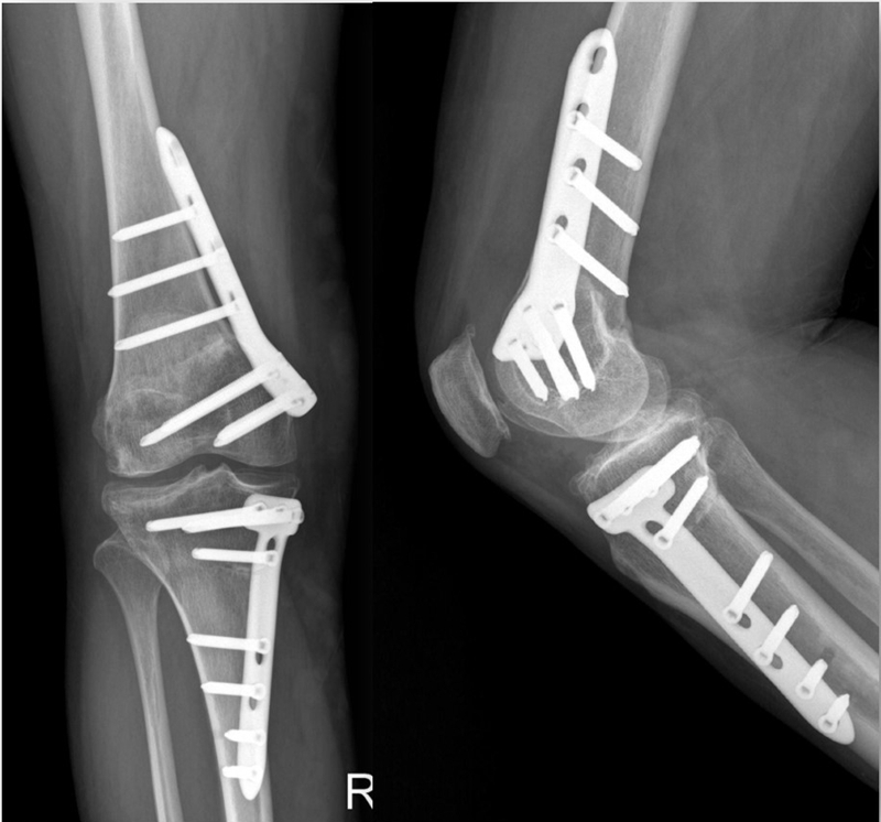 手术策略:第一侧放平关节线,第二侧达到目标力线。
