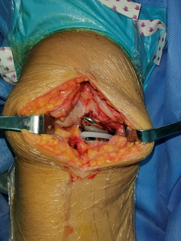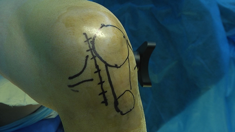 手术入路通常选择髌旁内侧入路,从髌骨内上角到胫骨结节上缘即可,切口偏向内侧髁的中央,这样显露比较充分。