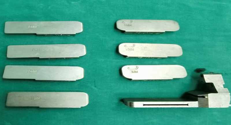 依次安装胫骨、股骨假体试模测试,用专业的间隙测量片测试关节间隙。