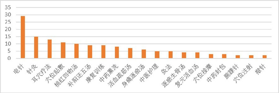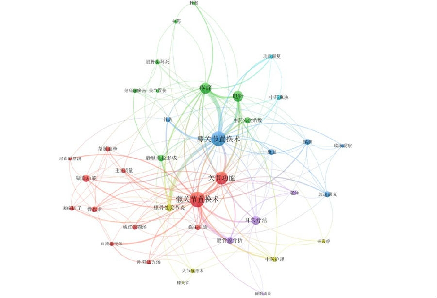 笔者基于万方、中国知网、PubMed、WOS数据库,对2023年中医药在髋膝关节置换围术期加速康复相关的文章进行了全面检索,中文检索词包括:中医药、针灸、推拿、耳穴、关节置换、康复;英文检索词包括:Traditional Chinese Medicine、Acupuncture、Moxibustion、Manual Therapy、Arthroplasty、rehabilitation。通过分析所得446篇文献的摘要及内容,排除Meta分析、病例报告、综述以及不相关内容,最终纳入152篇符合标准的文献。我们从关键词、治疗方法、研究主题等角度对2023年中医药在髋膝关节置换围术期加速康复的临床进展进行了分类和梳理,并以改善功能、镇痛方法、预防并发症为主题,对筛选出的12篇代表性研究进行详细论述。