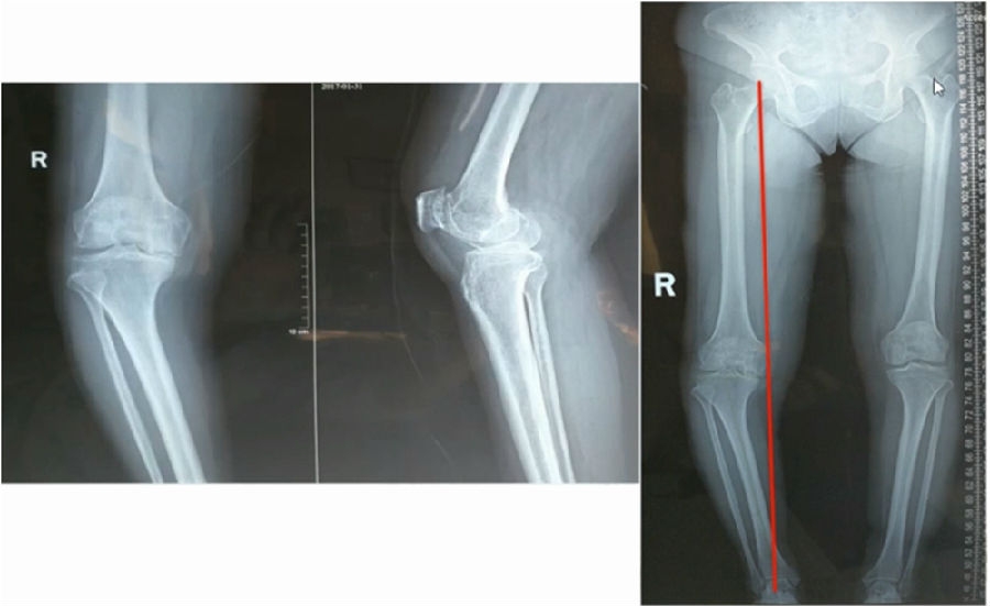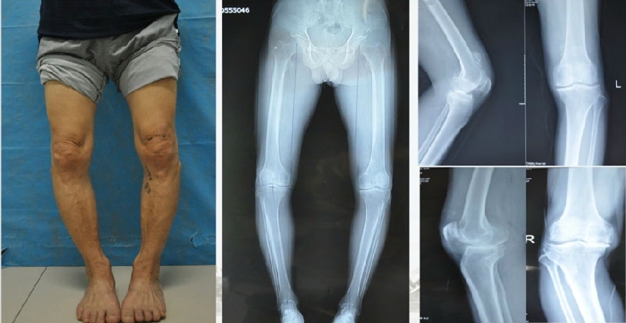 典型病例,男性,65岁,农民,双膝内翻16度。