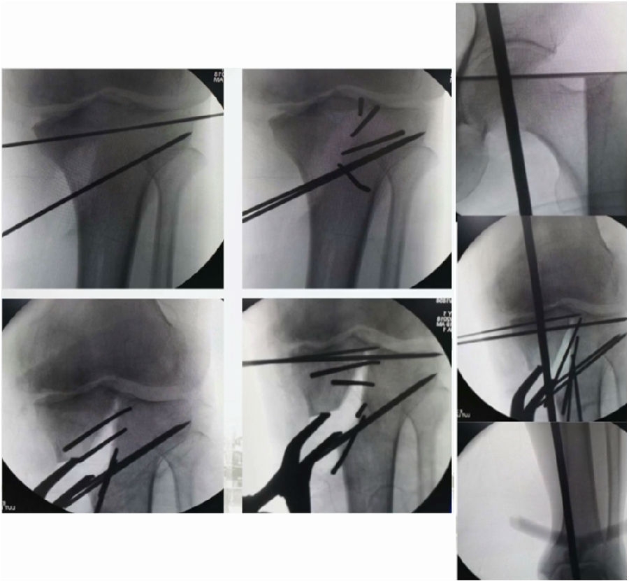 当膝关节MCOA合并旋转畸形,膝关节过伸、屈曲缩畸形,肢体短缩等复合畸形时,可以通过联合胫骨结节截骨、改变胫骨的后倾角度等矫正,但内固定矫形存在较大的局限性,可考虑外固定架。